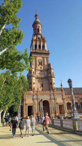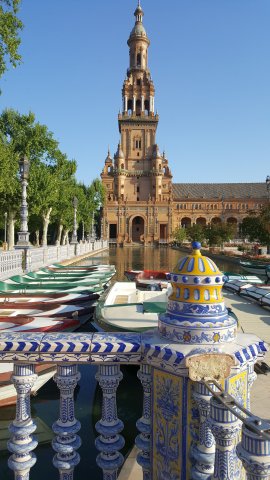 Sevilla ist die Hauptstadt der südspanischen Region Andalusien und berühmt als "Wiege des Flamencos", der hauptsächlich im Viertel Triana praktiziert wird. Zu den bedeutendsten Wahrzeichen zählen der kunstvolle Alcázar-Palast, der unter der Dynastie der maurischen Almohaden erbaut wurde, und die Stierkampfarena Plaza de Toros de la Maestranza aus dem 18. Jh. Die gotische Kathedrale von Sevilla beherbergt das Grabmal von Christoph Kolumbus und die Giralda, ein zum Glockenturm umfunktioniertes Minarett.